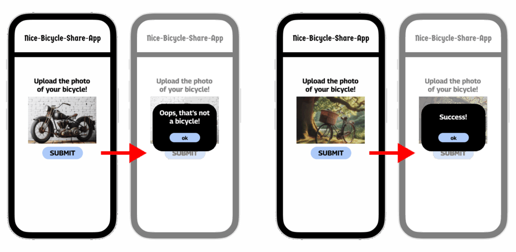 Imagine we're working on an app called Nice-Bicycle-Share-App, an exciting new platform for bicyclists. One of the main features of the app allows users to share photos of their bicycles with other users. However, some users are uploading images that aren't bicycles, which is significantly degrading the user experience. To address this, we need to implement a system that ensures only bicycle images are uploaded.